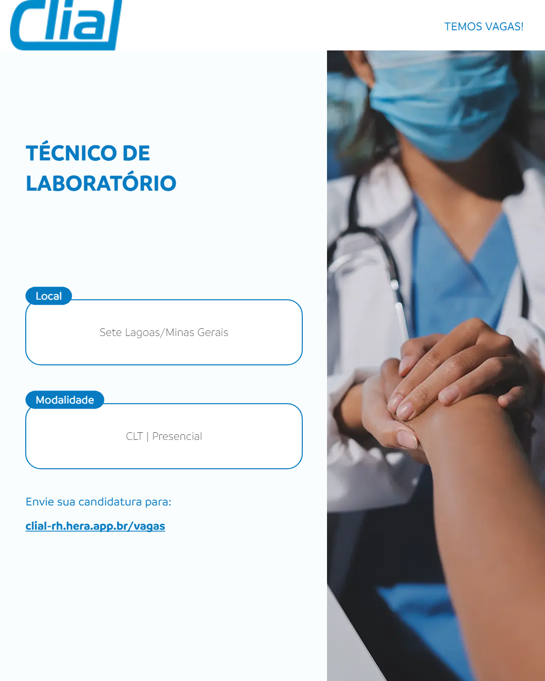 Obrigatório: Curso Técnico completo em Patologia Clínica ou Análises Clínicas; Conhecimento em informática(pacote office); Ensino e habilidades técnicas; Análises Clínicas; Atendimento Pré-Analítico; Coleta Infantil; Cuidado Centrado no Paciente. Requisitos desejáveis: Conhecimento básico em Classificação de Grupo Sanguíneo ABO e RH da Amostra do Paciente; Conhecimento básico em Tipagem Sanguínea; Conhecimento básico em Testes Pré-Transfusionais; Microbiologia e/ou Coagulação; Conhecimento em Legislações da área de atuação e vigilância sanitária;